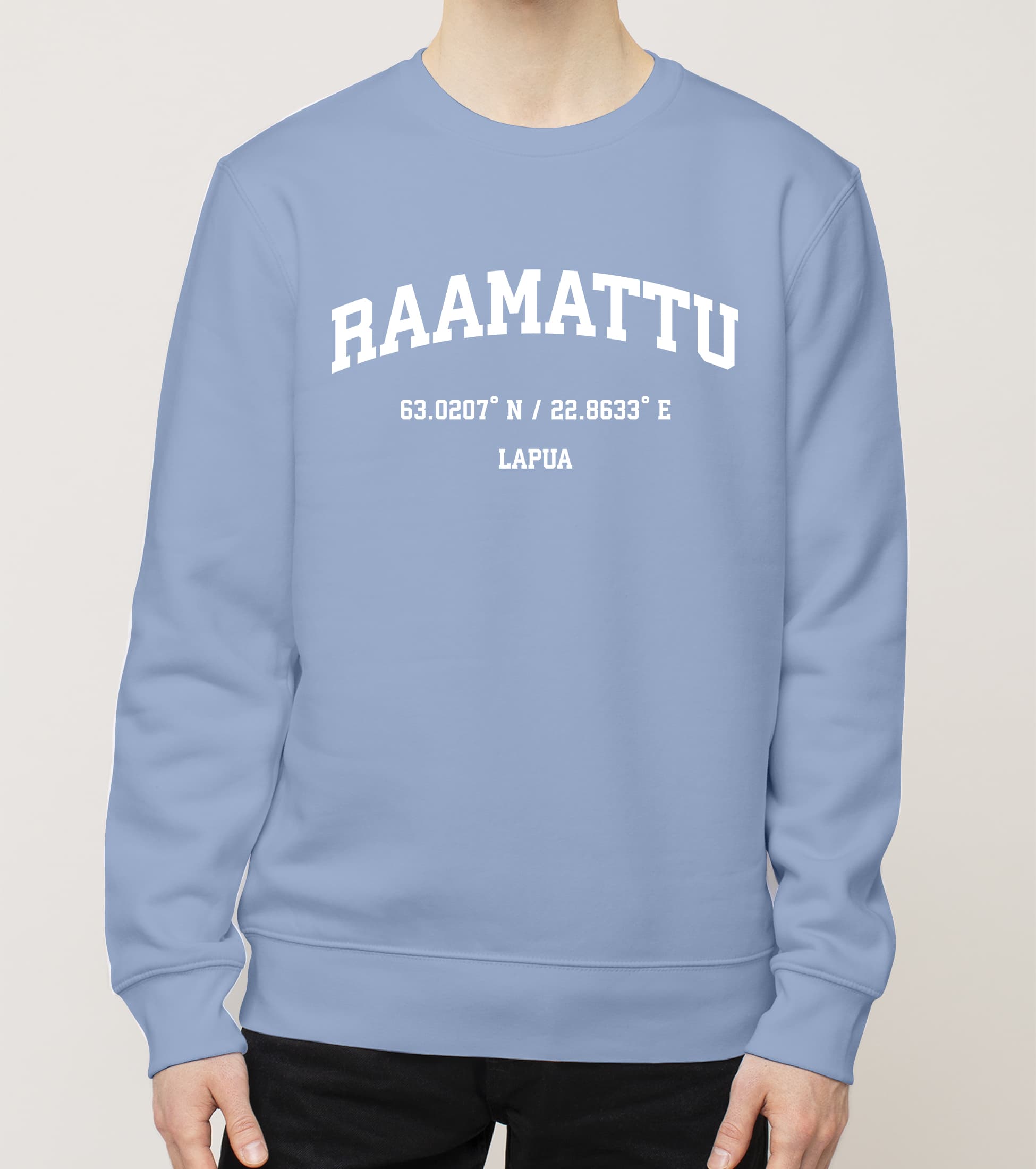 - Luomupuuvillasta valmistettu college-paita (85 % luomupuuvilla, 15 % kierrätyspolyesteri)